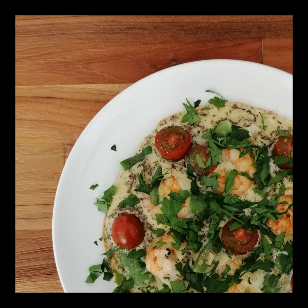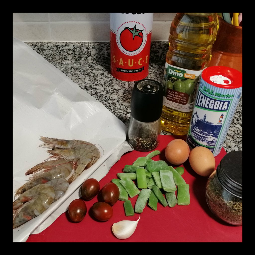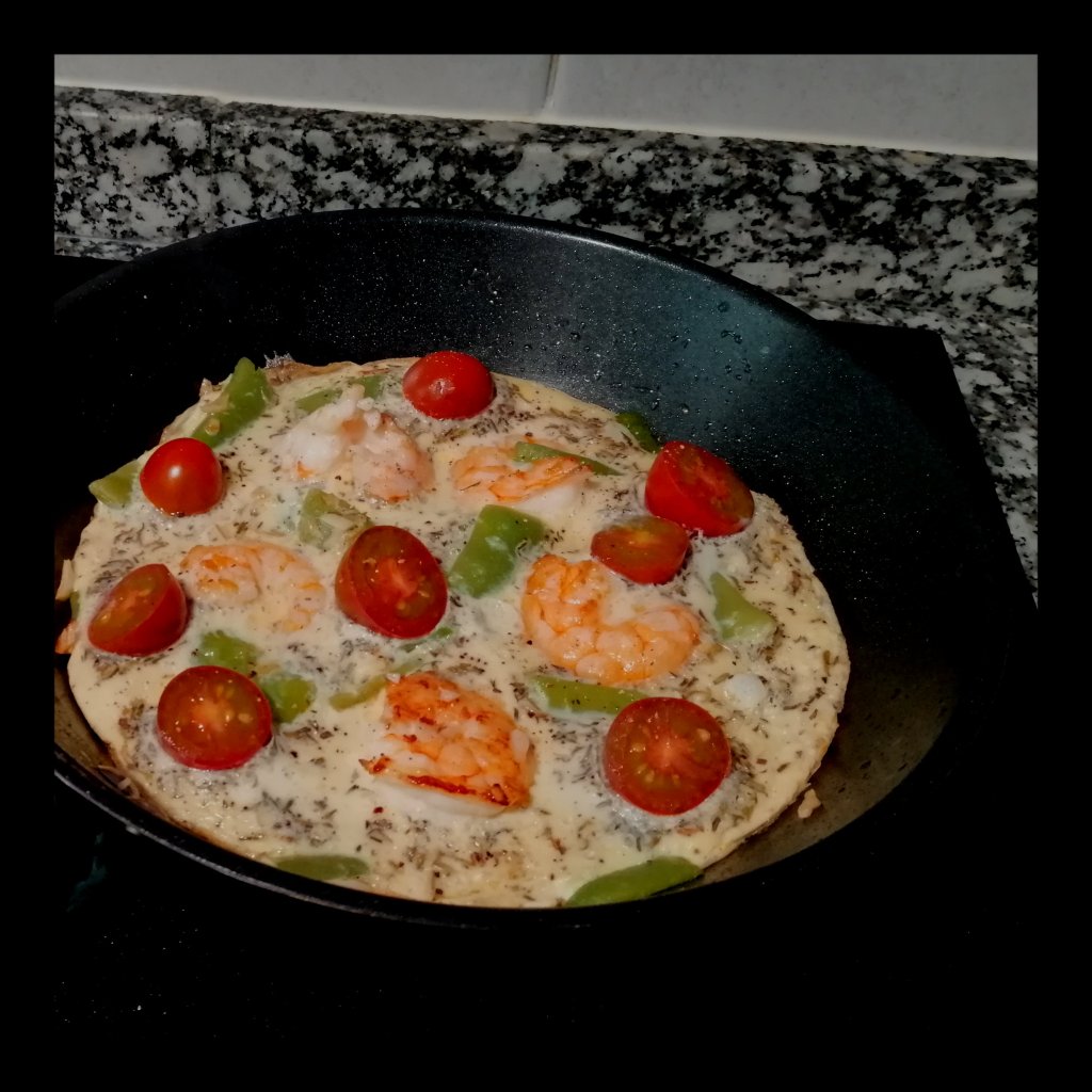 den Knoblauch zu den Langostinis geben und ca. 1 Min weiterbraten, die Hitze auf knapp Mittel reduzieren, dann die Bohnen hinzufügen und alles gleichmäßig in der Pfanne verteilen, die verschlagenen Eier dazugießen und die Tomaten-Hälften auf dem Omelett verteilen, alles unter dem Deckel in ca. 4 Min. stocken lassen