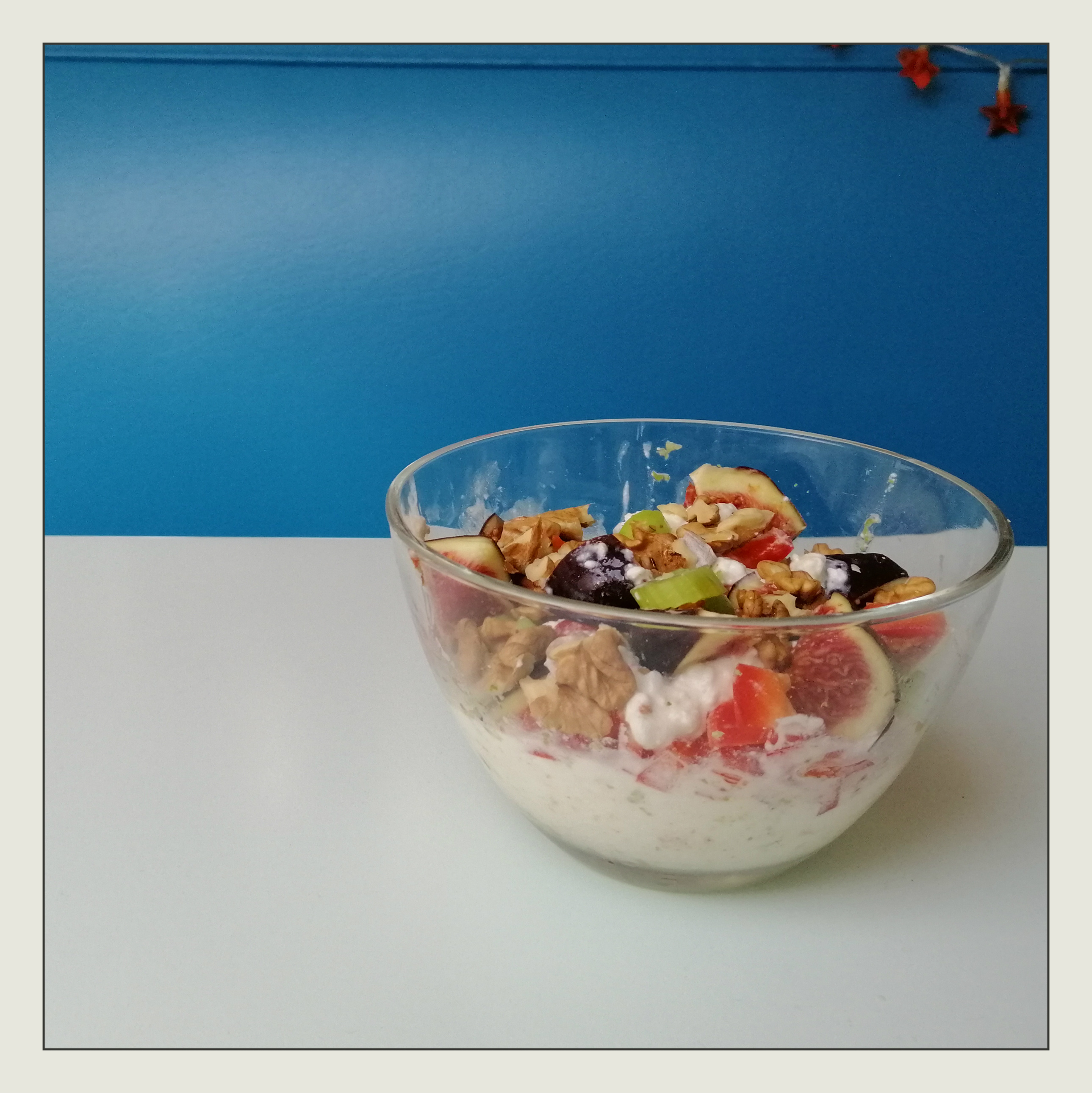 1 größere Feige (in kleinere Stücke geschnitten) grob untermischen, dann mit