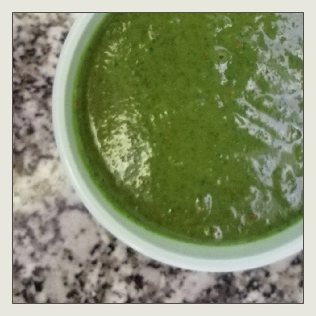 1/3 TL gem. Kreuzkümmel gut vermischen, dann mit dem Mixstab in einem hohen Gefäß pürieren