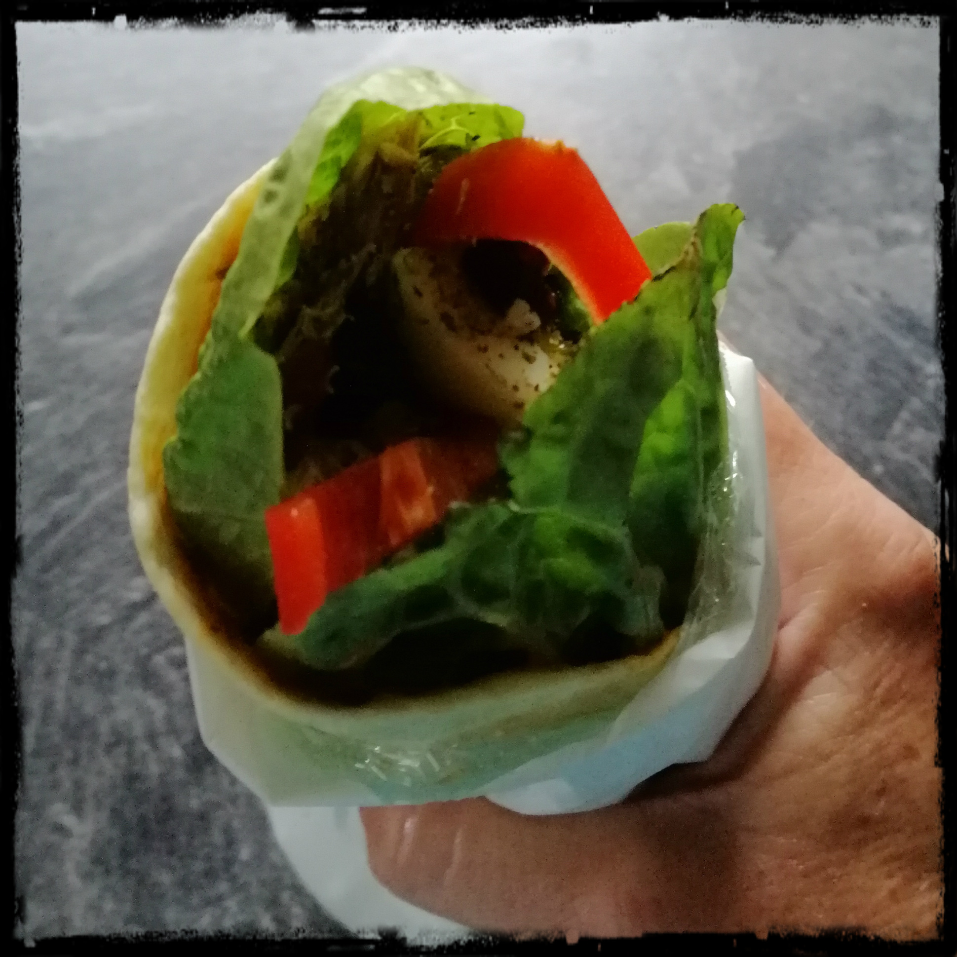 frisch gemahlenem schwarzen Pfeffer würzen, zu einem Wrap fest zusammenrollen und in
