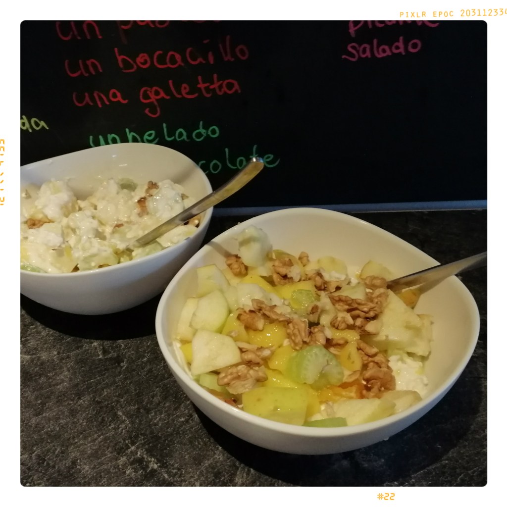 2 EL Ahornsirup verrühren und auf zwei Schüsseln aufteilen,