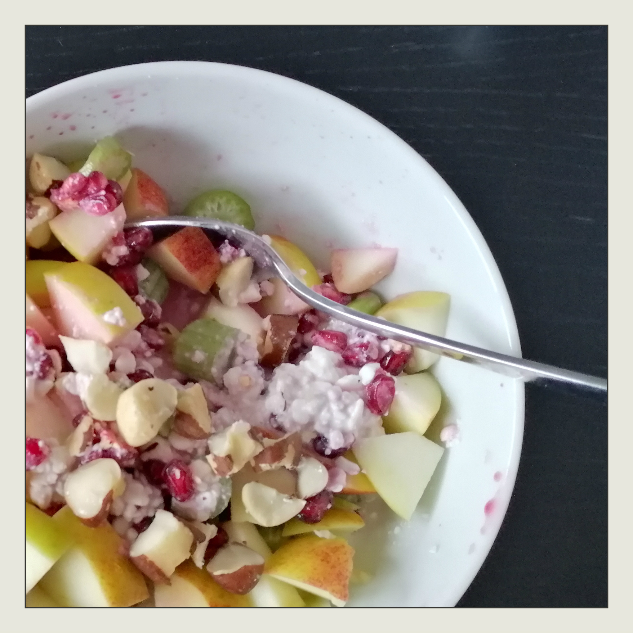 1 kl. Apfel (in kleine Stücke geschnitten) leicht untermischen und alles mit