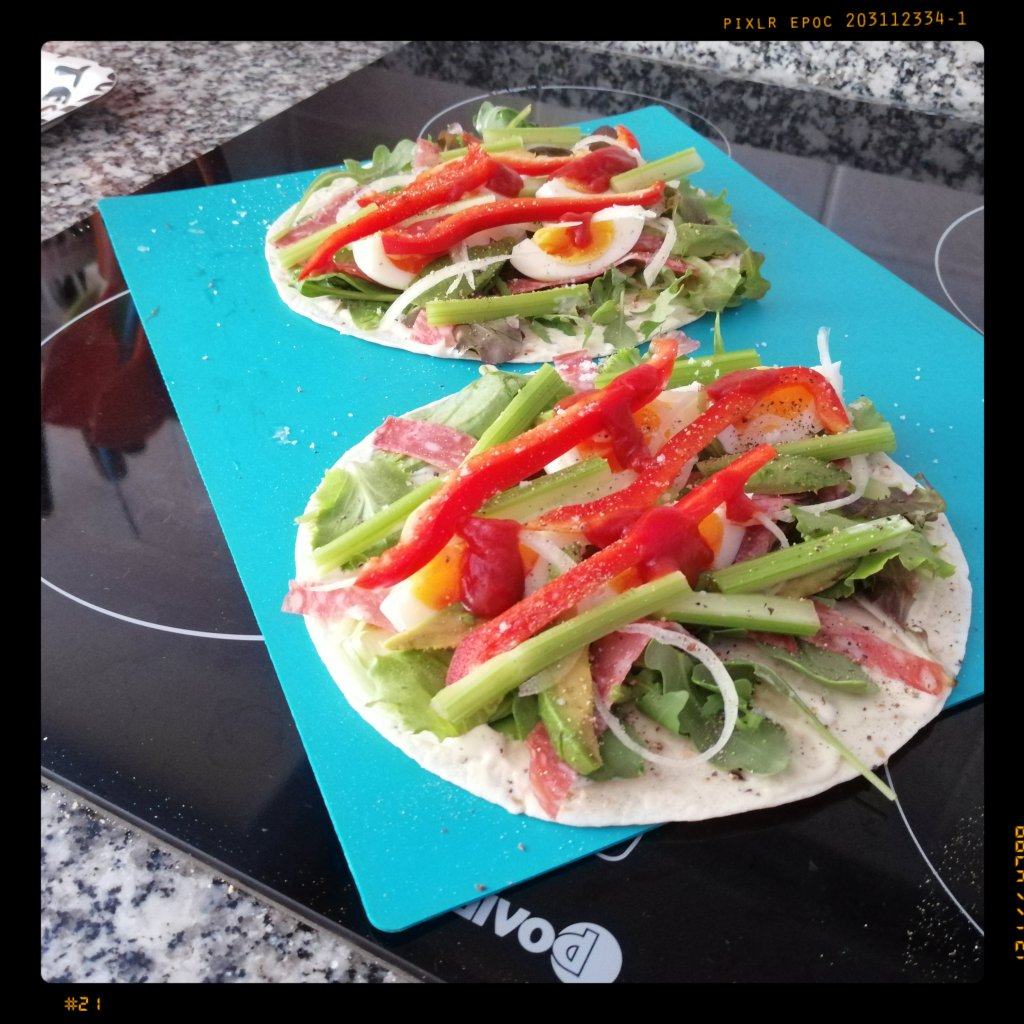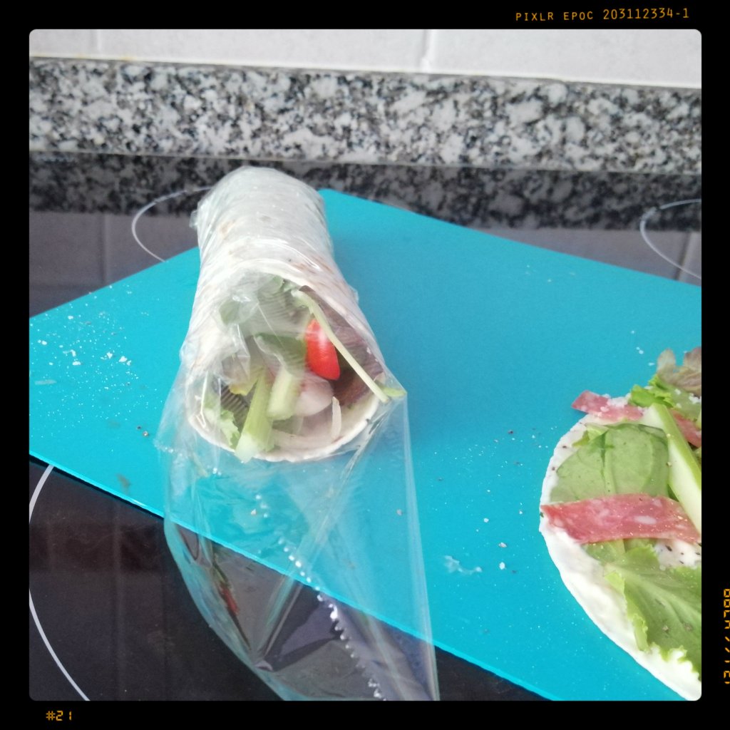 frisch gemahlenem schwarzen Pfeffer würzen, zu einem Wrap fest zusammenrollen und in
