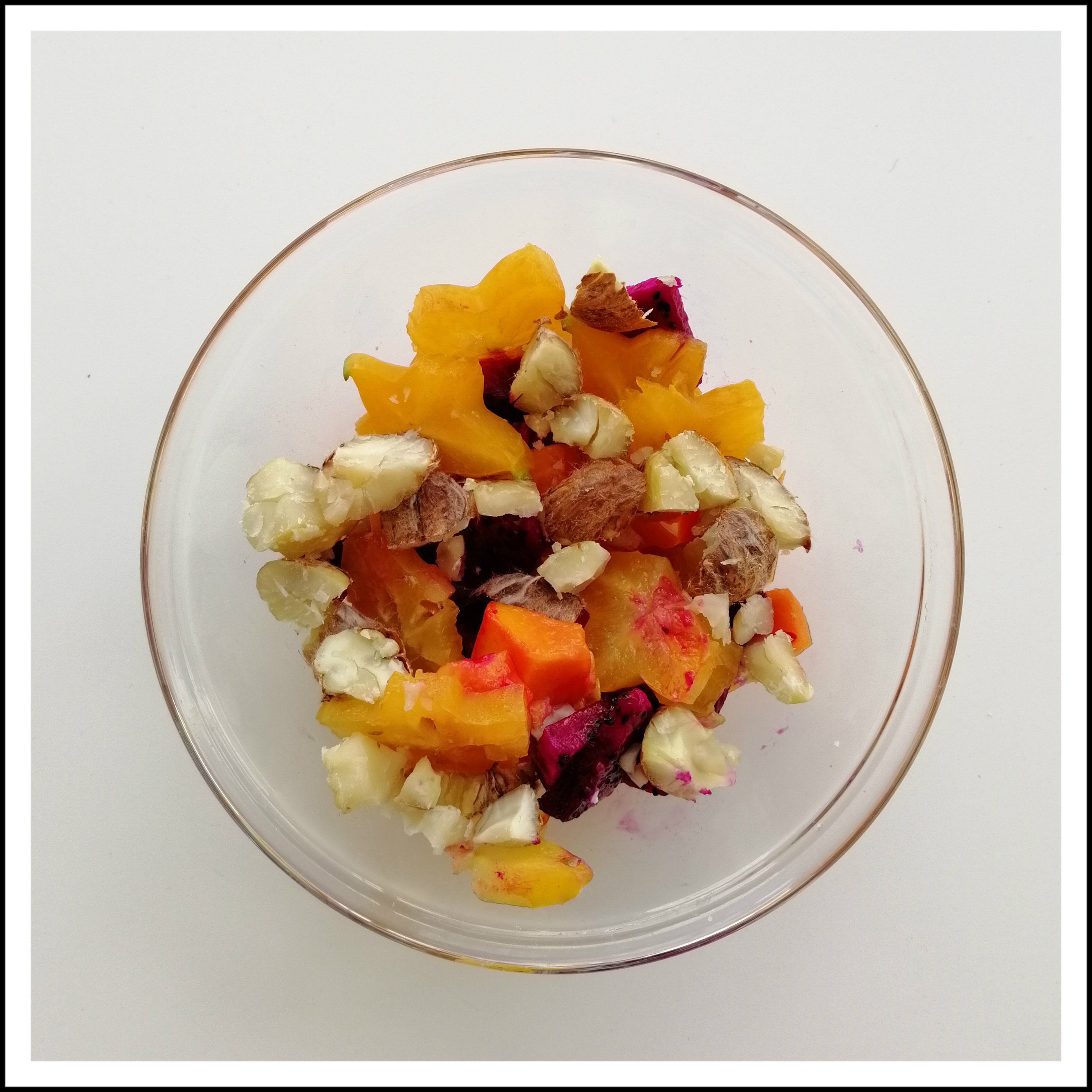 1 Karambole (ca. 80 g – in Scheiben geschnitten, die Scheiben ggf. halbiert) sowie
