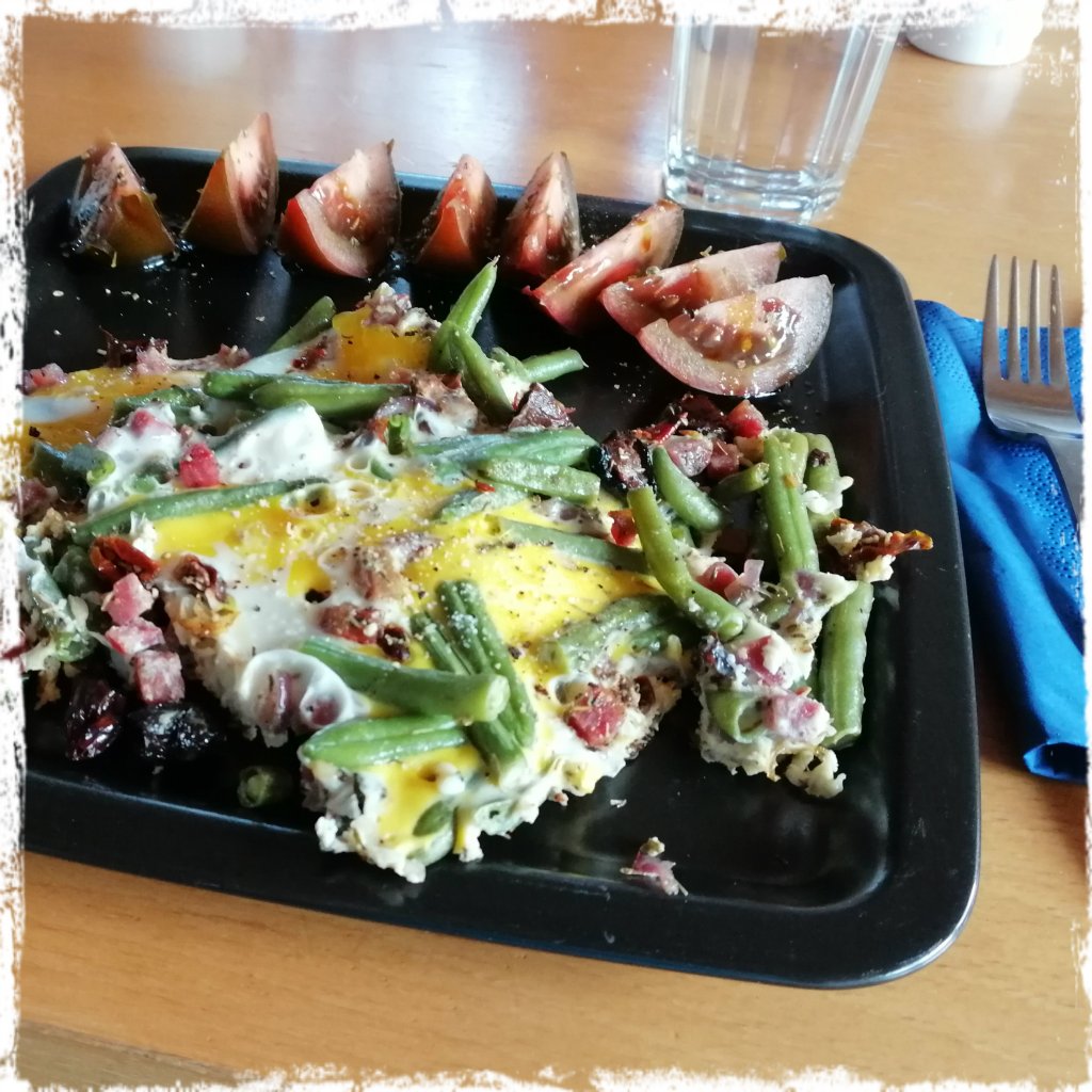 das Ei in zwei Portionen teilen und auf vorgewärmten Tellern servieren, vielleicht mit ein paar Kumato-Tomaten servieren