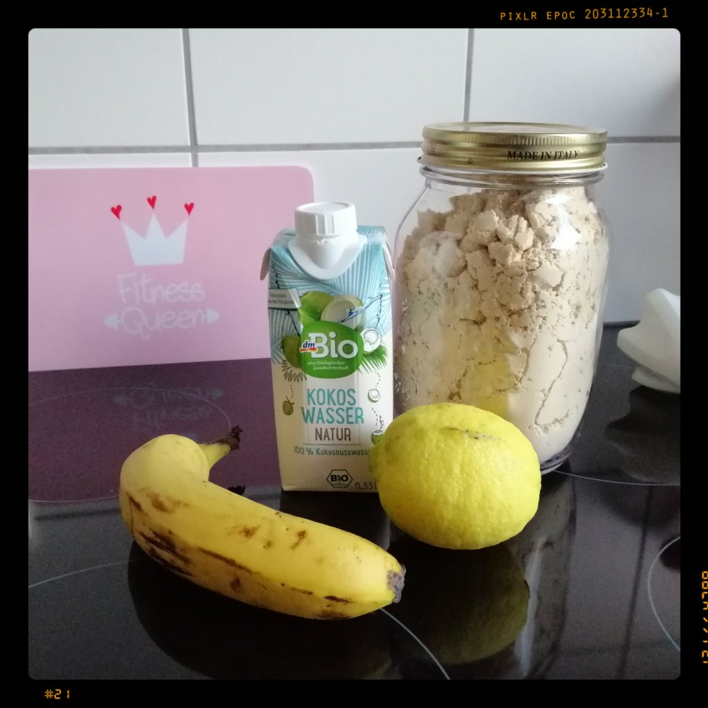 1 reifen Banane, der abgeriebenen Schale und dem Saft von