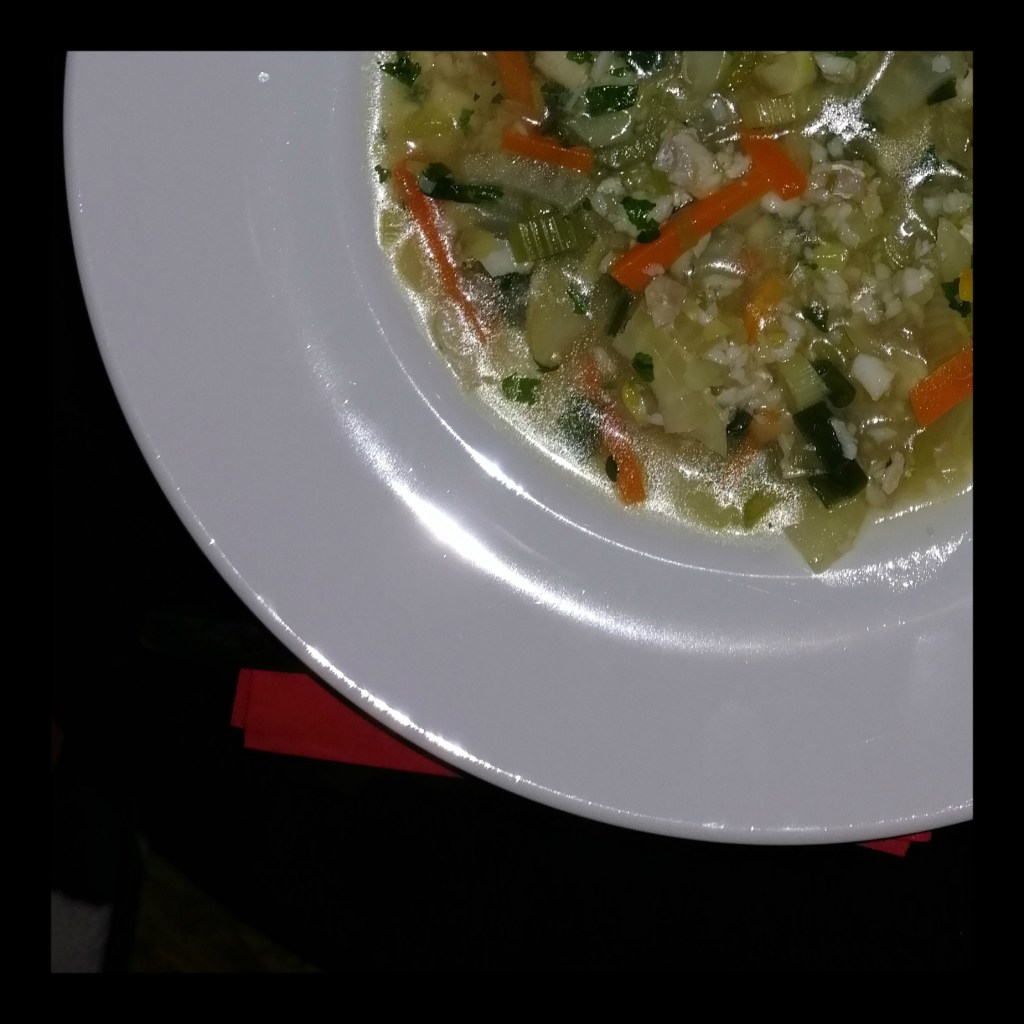 3 geh. EL gehackte glatte Petersilie hineingeben und die Suppe in zwei vorgewärmte Teller füllen