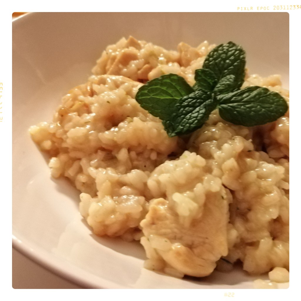 das Risotto auf zwei vorgewärmte Teller aufteilen und mit