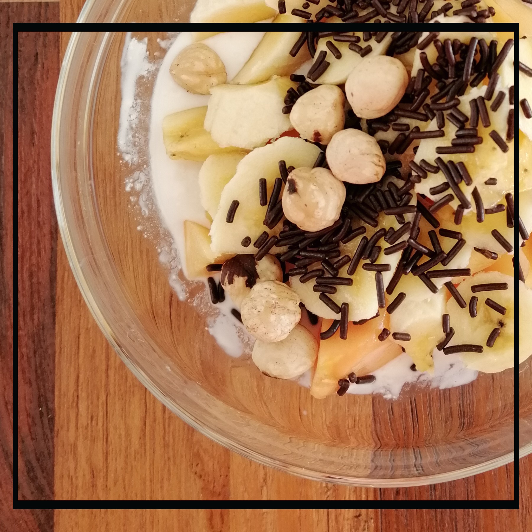1 Scheibe Papaya (ca. 1 cm dick) in kleine Stücke schneiden und darauf verteilen, mit