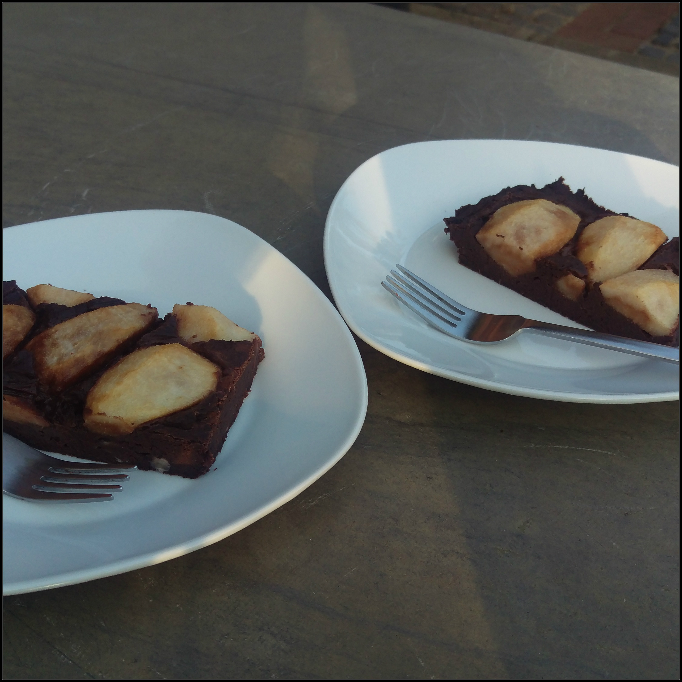 Brownies mit Birnen für sofort, Brownies pur für ein, zwei Tage später