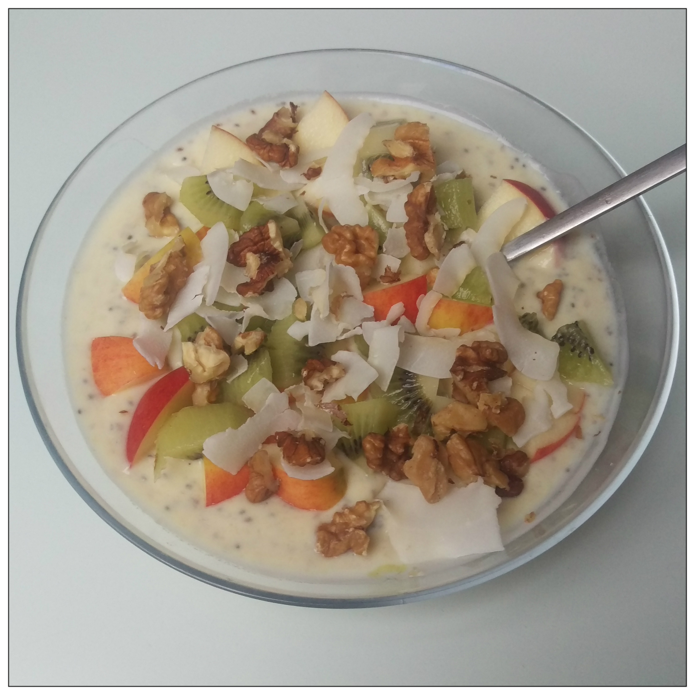 1 EL Kokosöl unterrühren (es kann auch gerne die mehrfache Menge für zwei, drei Tage vorbereitet und im Kühlschrank aufbewahrt werden)