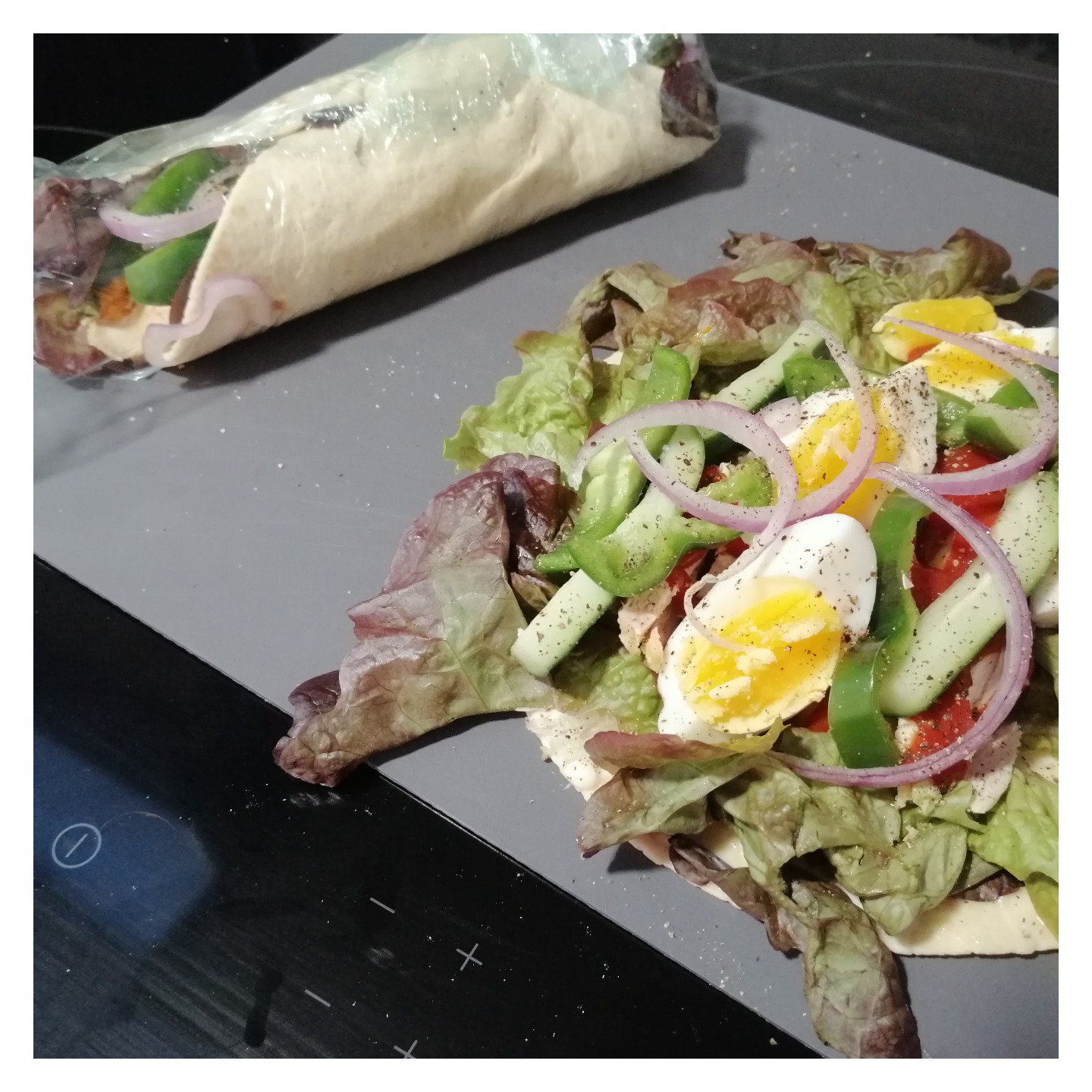 frisch gemahlenem schwarzen Pfeffer würzen, zu einem Wrap fest zusammenrollen und in