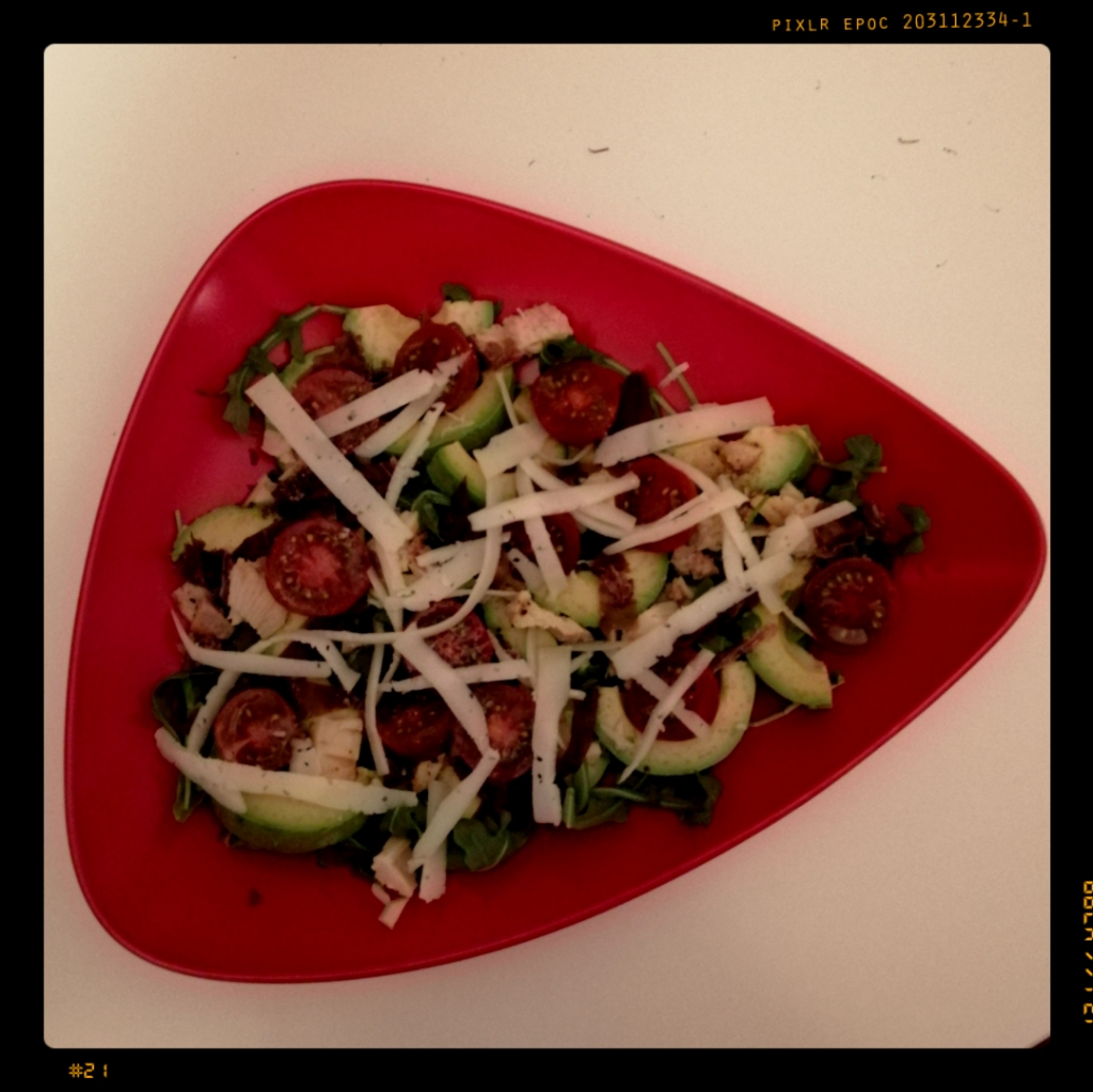 frisch gemahlenem Pfeffer mixen und den Salat damit anmachen, zum Schluss mit