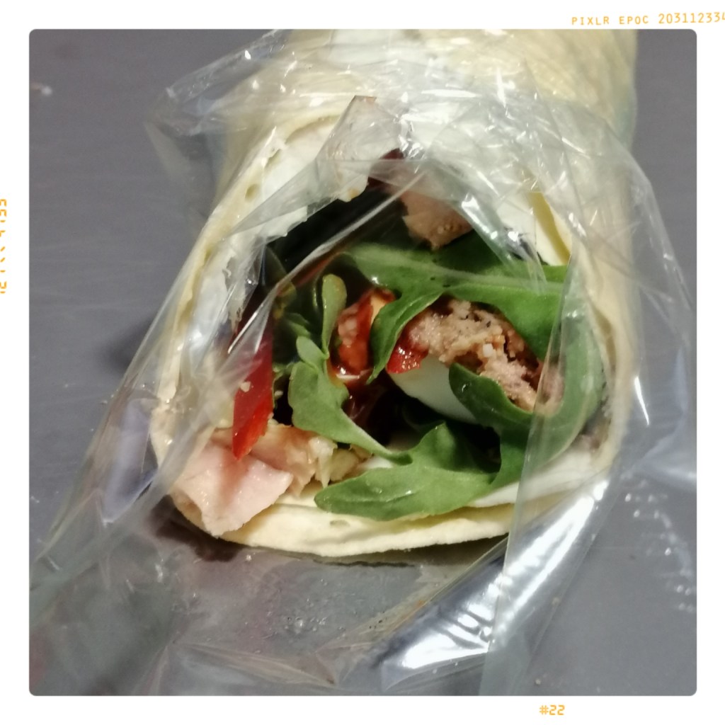 frisch gemahlenem schwarzen Pfeffer würzen, zu einem Wrap fest zusammenrollen und in