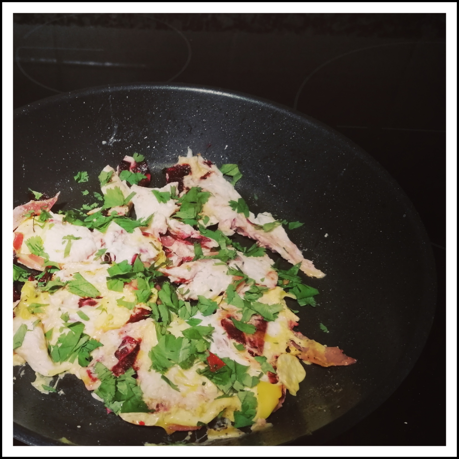 das Rührei mit dem gehackten Koriander bestreuen