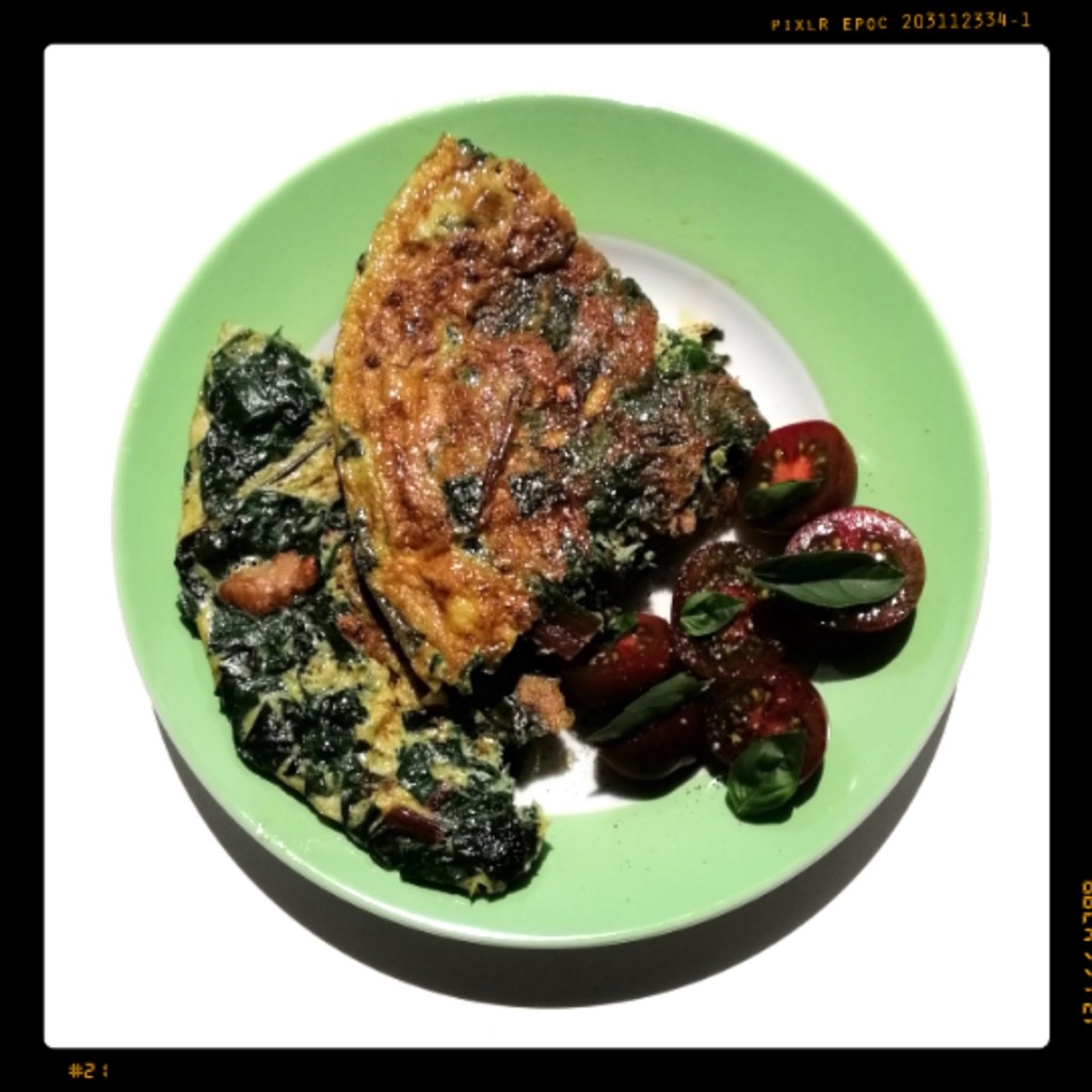 2 EL Olivenöl in der Deckelpfanne mittel erhitzen, die Ei-Mischung in der Pfanne ausbreiten, die Pfanne sofort mit dem Deckel schließen und etwa 8 Min. garen, bis das Ei gestockt ist, dann die Tortilla über den Deckel wenden und offen noch etwa 1 Min. weiterbraten