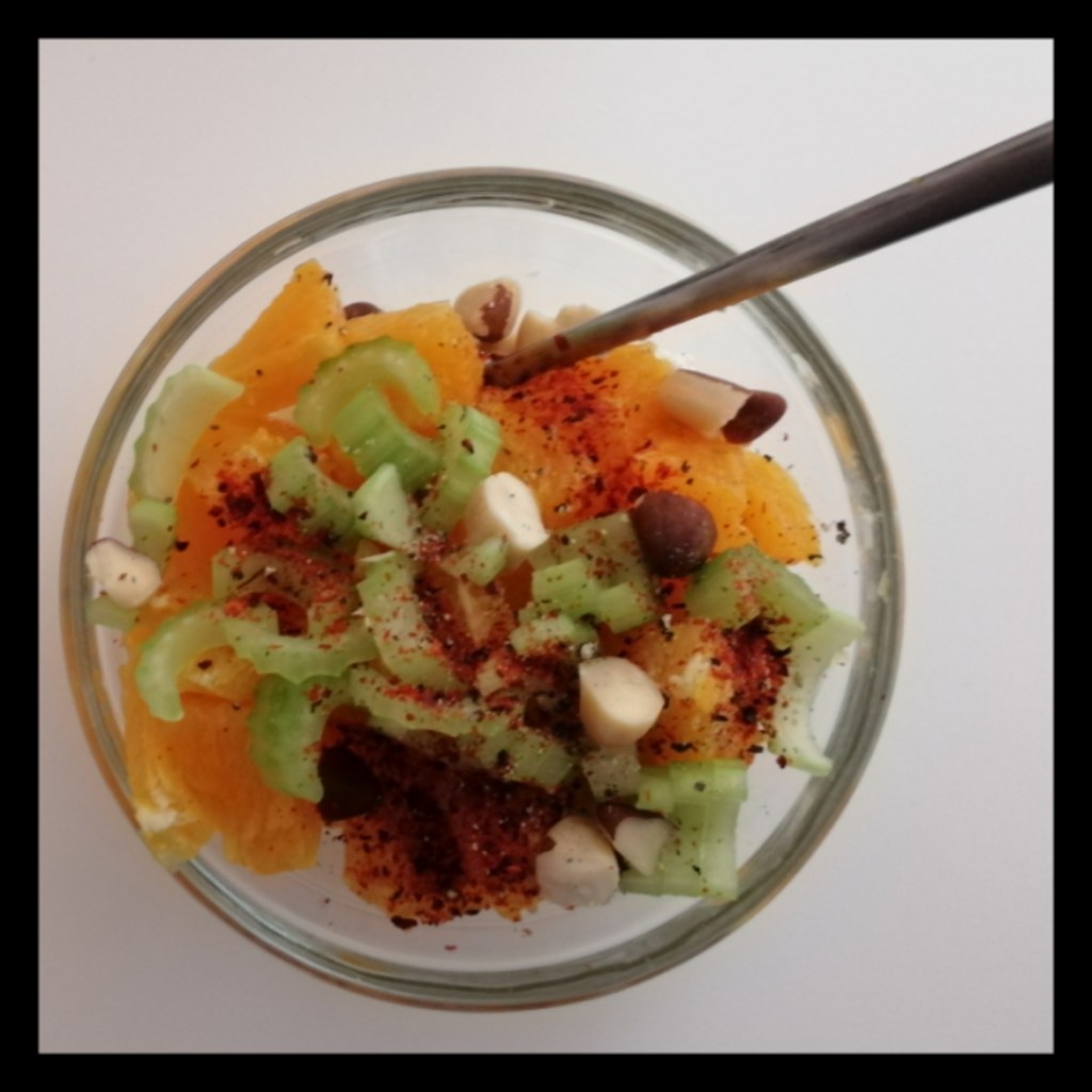 1 Orange (geschält und in kleine Stücke geschnitten, incl. dem Saft, der sich dabei bildet)und