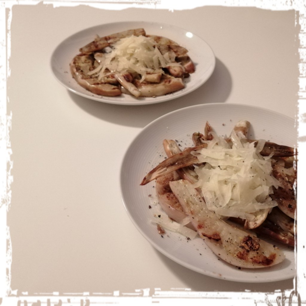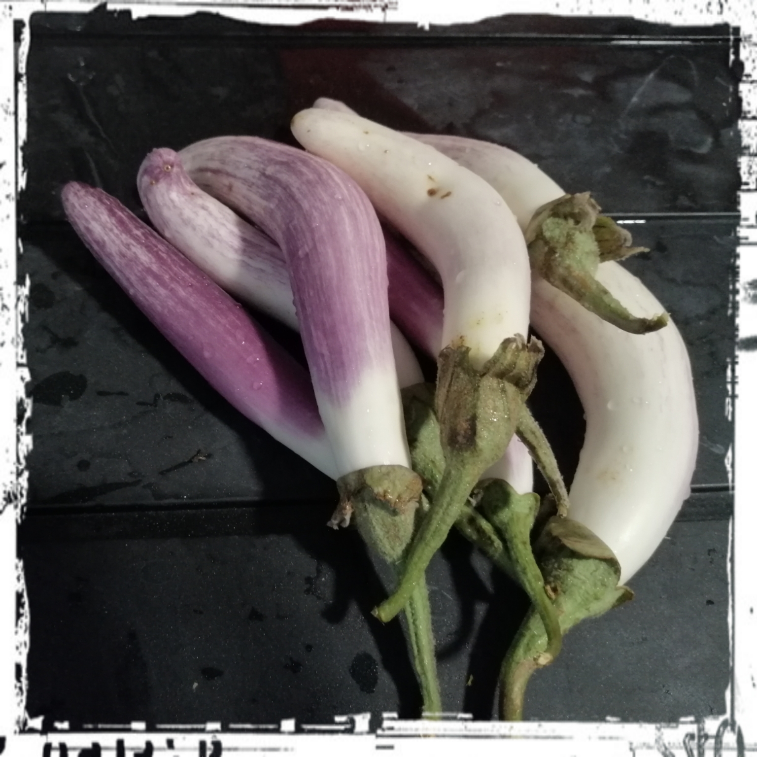 300 – 350 g Antigua-Auberginen längs in dünne Scheiben von ca. 4 mm schneiden,