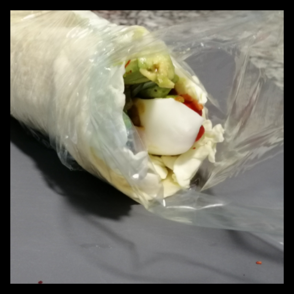 Frischhaltefolie (oder wenn man ihn sofort isst: Pergamentpapier) wickeln