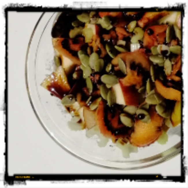 1 Tamarillo mit dem Löffel auslösen und alles auf den Requeson geben,