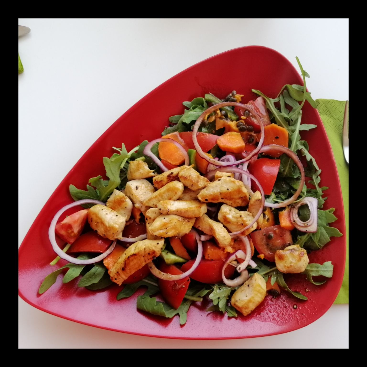 frisch gemahlenem schwarzen Pfeffer würzen und auf den Salat geben