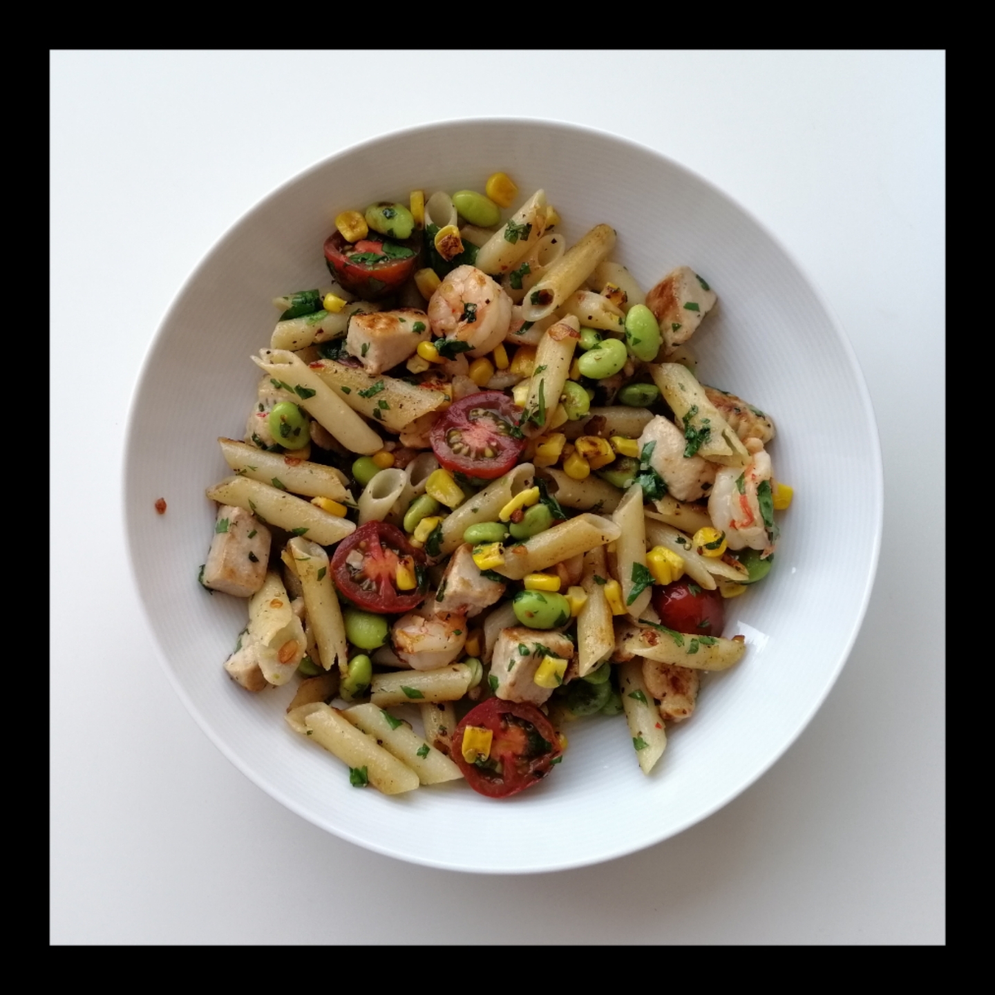 den Tunfisch in Stücke von etwa 2 x 1 cm schneiden und mit den Garnelen sowie dem Knoblauch und dem Chili kurz anbraten, dann die Pasta untermischen, kurz mitbraten und alles mit