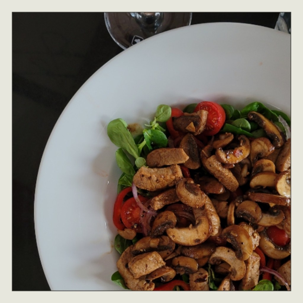 250 g braune Champignons in ca. 1/2 cm dicke Scheiben schneiden