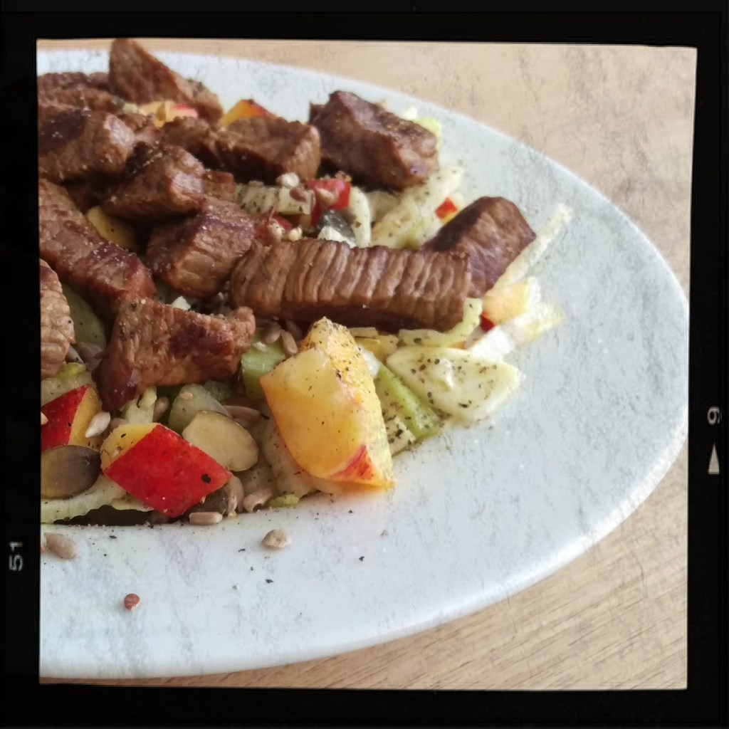 Fenchelsalat mit Streifen vom Kalbsschnitzel