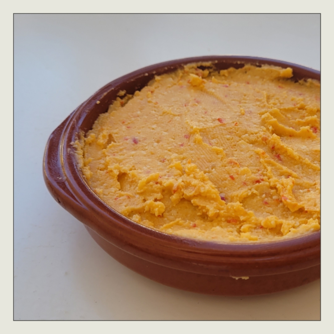 reicht als Brotaufstrich etwa für 8 Scheiben, kann auch als Dip zu Gemüse gereicht werden