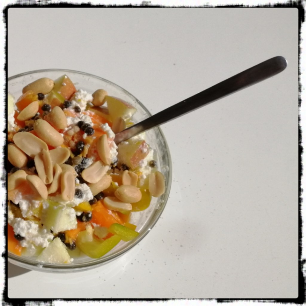 Ricotta mit Apfel, Paprika, Papaya und Erdnüssen