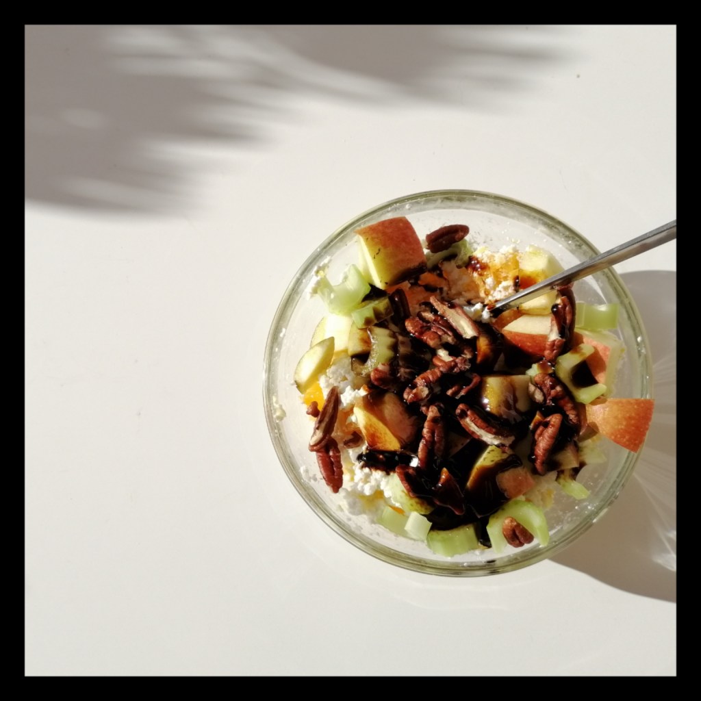 Ricotta mit Apfel, Staudensellerie und Pekannüssen
